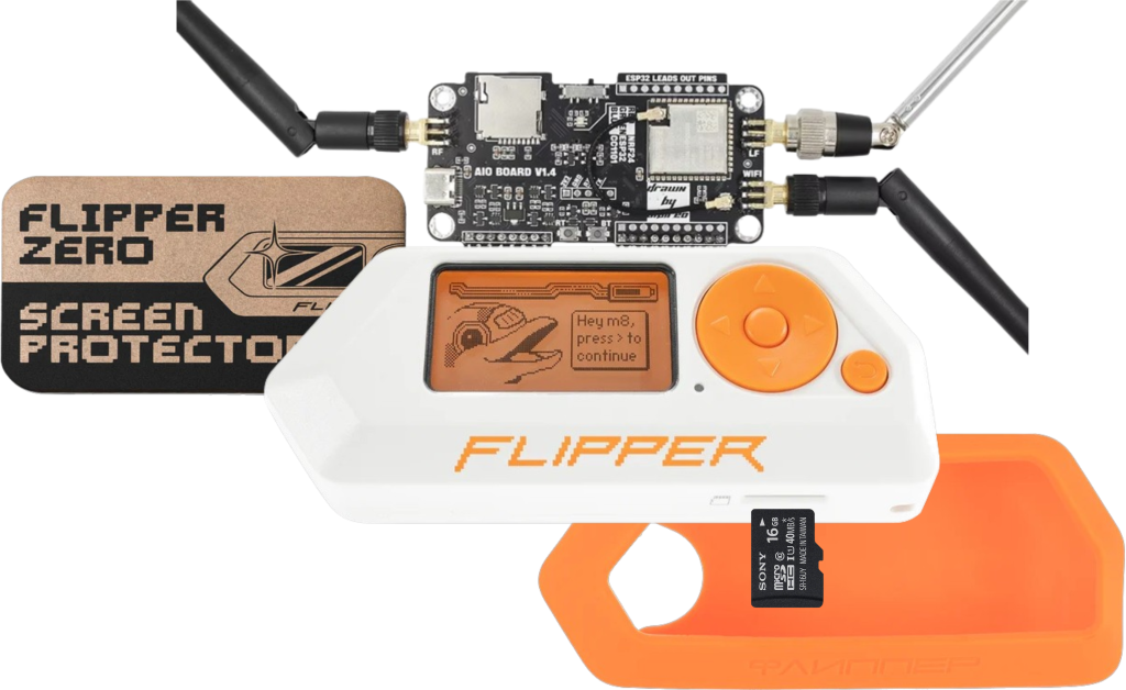 Este kit incluye el Flipper Zero originaltarjeta microSD con firmware instaladofunda de silicona protectoramica de pantalla, y suma una potente antena multibanda externa, que amplía significativamente las capacidades del dispositivo gracias a la integración de Chip CC1101, Módulo NRF24 y Módulo ESP32.